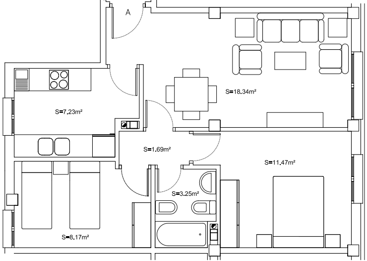 VIVIENDA TIPO A. 2 DORMITORIOS. PLANTA BAJA MOVILIDAD REDUCIDA.