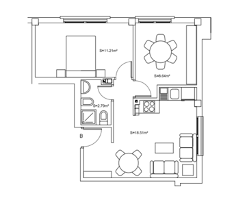VIVIENDA TIPO B. 1 DORMITORIO. PLANTA BAJA.
