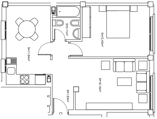 La vivienda tipo de 1 dormitorio, cuenta con salón cocina amueblada (Sin electrodomésticos), 1 cuarto de baño, 1 dormitorio y un comedor.
