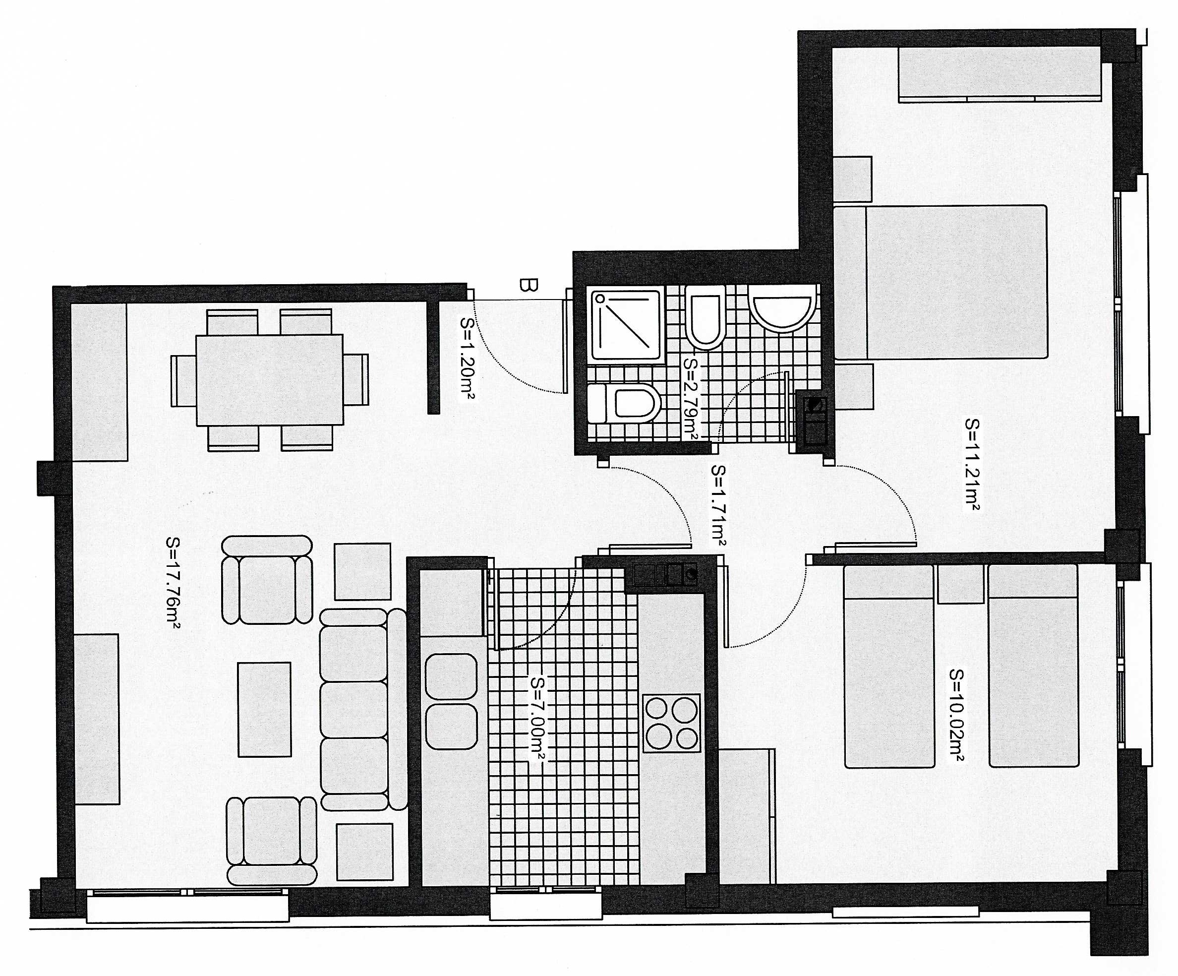 VIVIENDA TIPO B. 2 DORMITORIOS. PLANTA PRIMERA A QUINTA.